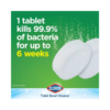 Cada pastilha proporciona uma limpeza duradoura com alvejante, com efeito de até 3 meses. Basta colocar uma pastilha no tanque do vaso sanitário para manter a limpeza, a sanitização e a desodorização a cada descarga.