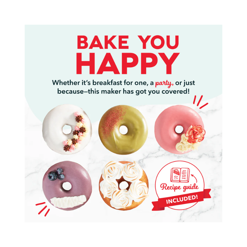 Personal Donut Maker, Prepare donuts fofinhos e personalizados em minutos ou transforme o preparo em um projeto divertido para toda a família! Basta conectar o aparelho, adicionar a massa de sua escolha e começar a assar. Suas superfícies duplas aquecem de forma uniforme para garantir resultados consistentes e deliciosos, enquanto o revestimento antiaderente facilita a liberação dos donuts e a limpeza. Solte a criatividade com coberturas, glacês e decorações. Ideal para um lanche individual, café da manhã, vendas de doces ou momentos de diversão culinária.