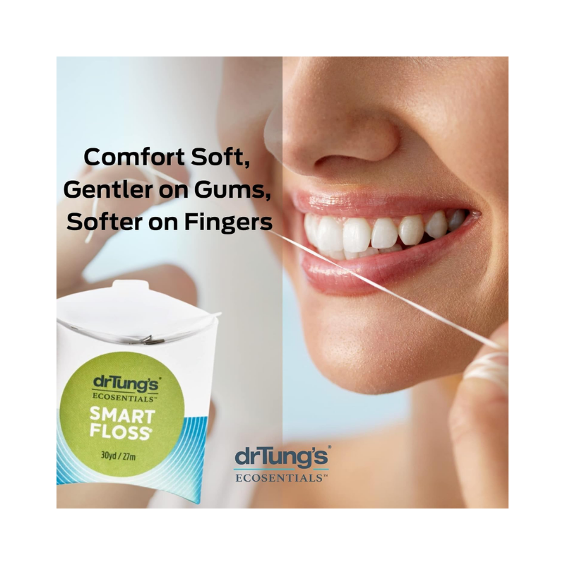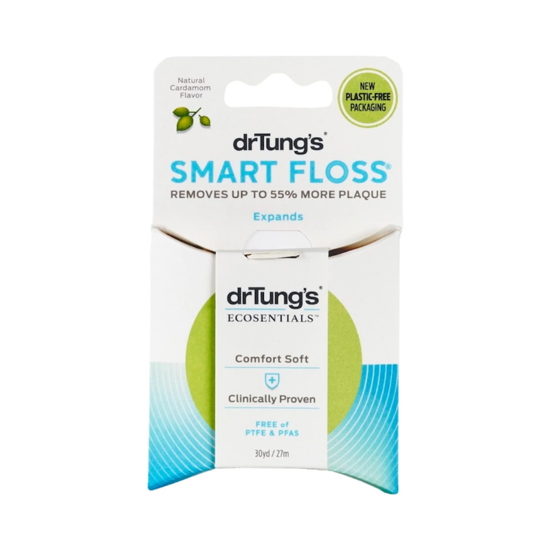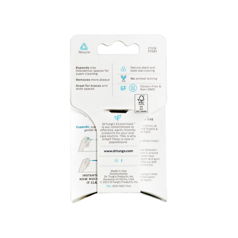 LIVRE DE ALÉRGENOS: O Smart Floss da drTung é naturalmente livre de alérgenos como glúten. Este fio dental trançado é livre de BPA, PTFE e cera petroquímica.