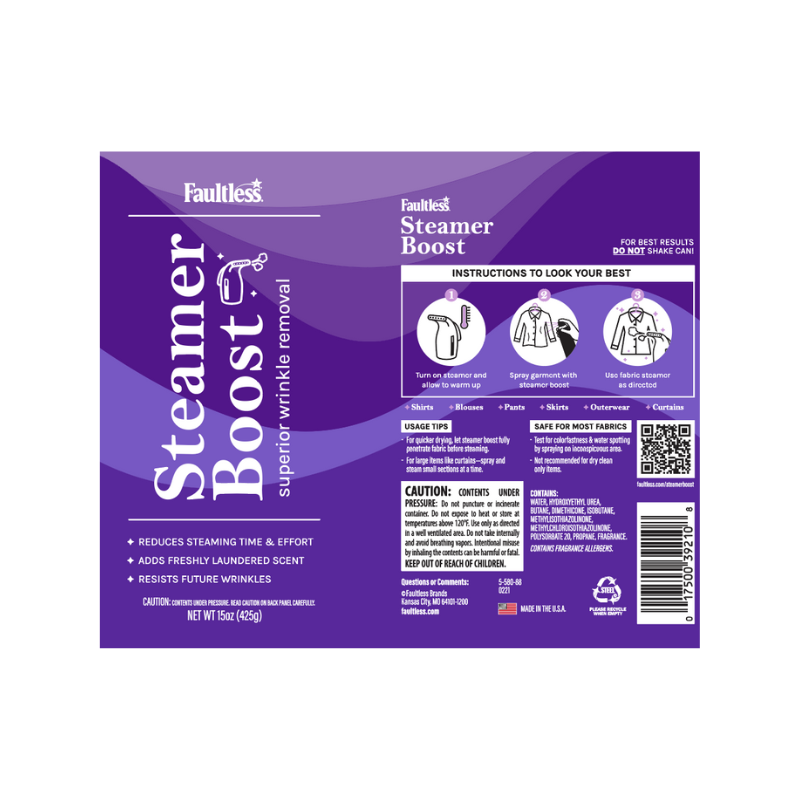 Passe suas roupas mais rápido e de forma mais eficaz do que nunca com o Faultless Steamer Boost. Este potente removedor de rugas foi formulado para eliminar e prevenir novas rugas ao longo do dia. Além disso, deixa suas roupas com um perfume de recém-lavadas.